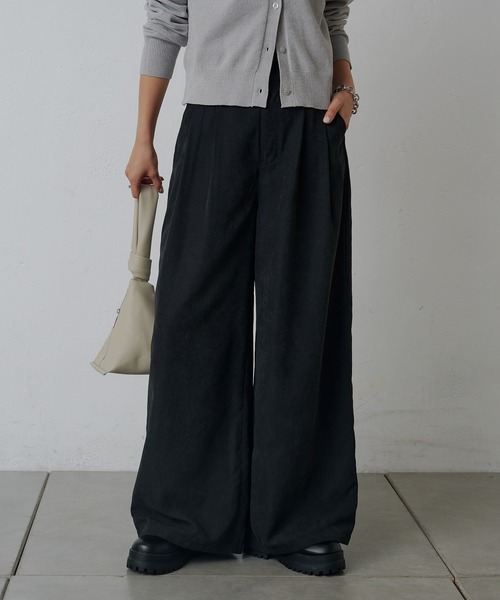 ブラウスやTシャツ、スウェットなどいろいろなアイテムと相性もいいので着回しにも困らないワイドパンツです。