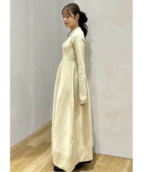 丸いフォルム感のあるシルエットと配色ボタンがポイントのポロニットワンピース。