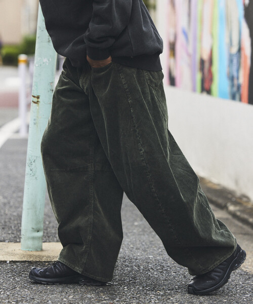ワイドシルエット ブリーチ加工 カーブ コーデュロイパンツ●今季トレンドのカーブシルエットパンツにコーデュロイ素材が登場
