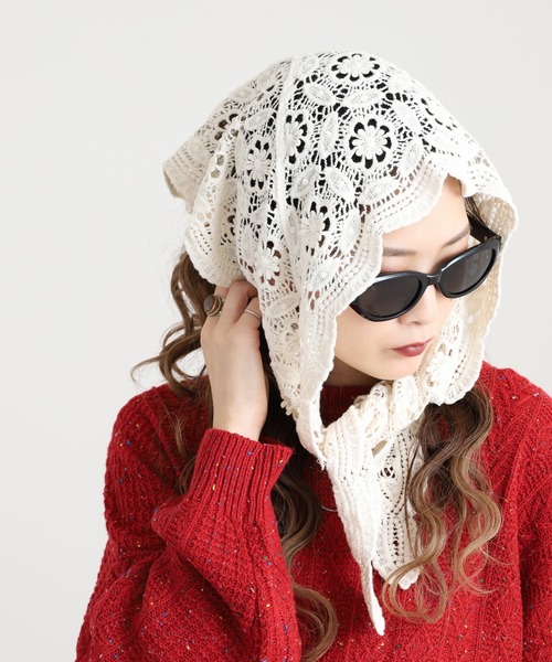 ナチュラルな綿素材を使用したクロッシェ編みのレースストールは、繊細な花柄デザインが上品な印象を与え、コーディネートに優しいアクセントをプラス。