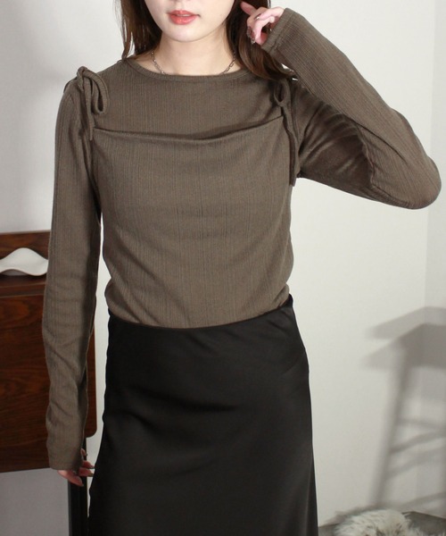 肩のリボンディテールがアクセントになったフェミニンなロングスリーブトップス。