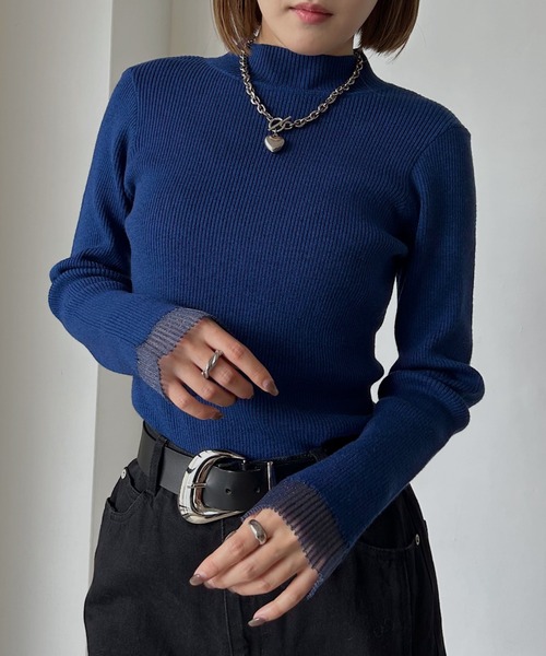 \【マシンウォッシャブル】袖口のアクセントが映える一枚で万能なハイネックニット/