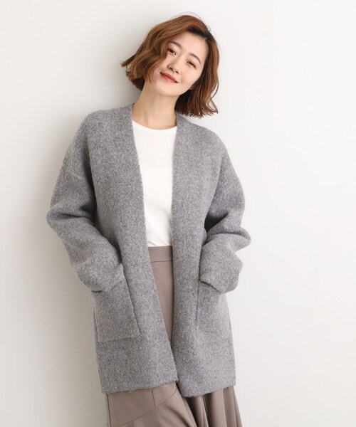 コートとカーディガンの中間的な立ち位置で仕立てた着流しタイプのニットコーディガンです。