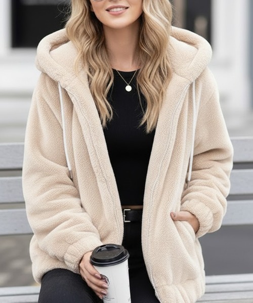 柔らかなフェイクファー素材が肌ざわり抜群で、保温性にも優れた一着。