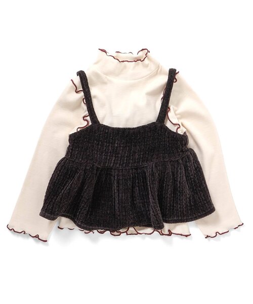 110:身幅トップス:32.5,ベロア:29 肩幅トップス:24 総丈トップス:41.5,ベロア:33 そで丈トップス:39.5