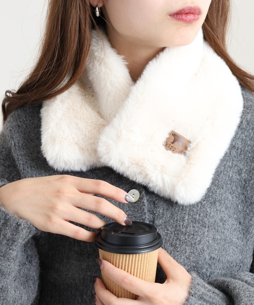ラビットファーの様なフワフワな素材のマグネット開閉式ティペット。
