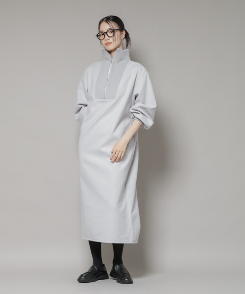 ソフトな肌触りで着心地が良い圧縮起毛素材のハーフジップワンピース。フロントのジップ開閉位置や合わせるインナーによって印象が変わるので、幅広いスタイルを楽しめます。