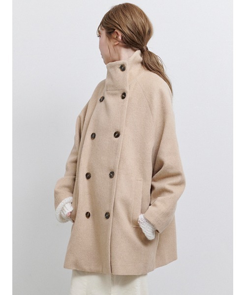 オーバーサイズのピーコート風デザインで、ラグランスリーブによる自然な落ち感が魅力。