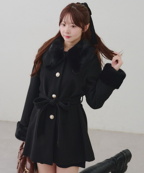 ・ファー付きで小顔効果&手元まで可愛い一枚です
