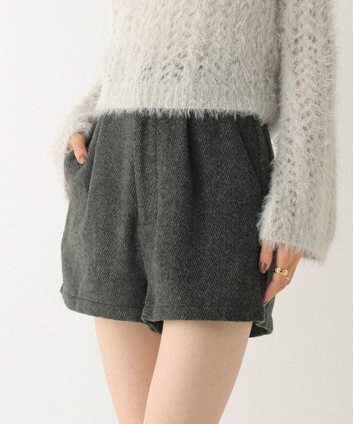 秋冬コーデを上品に仕上げるヘリンボーン素材のショートパンツ。