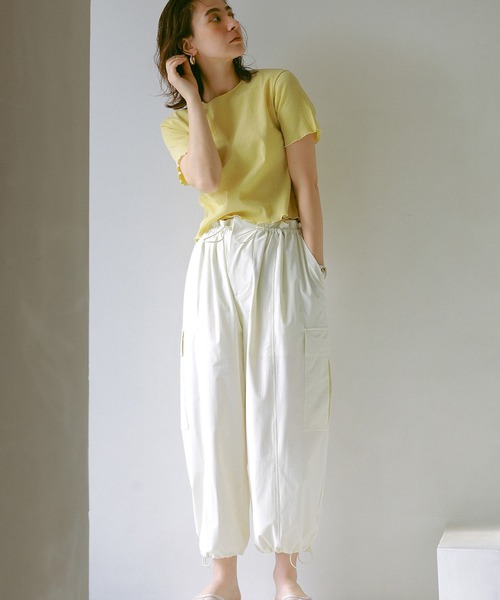 キーワード:カーゴパンツ レディース ウエストゴム クロップド スタンダード ハイウエスト 無地