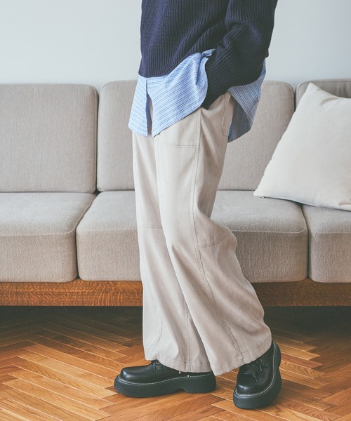 秋っぽ素材でシーズンムードを高めてくれるリラックスパンツ