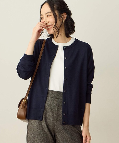 クルーネックのベーシックなデザインが使いやすいニットカーディガン。