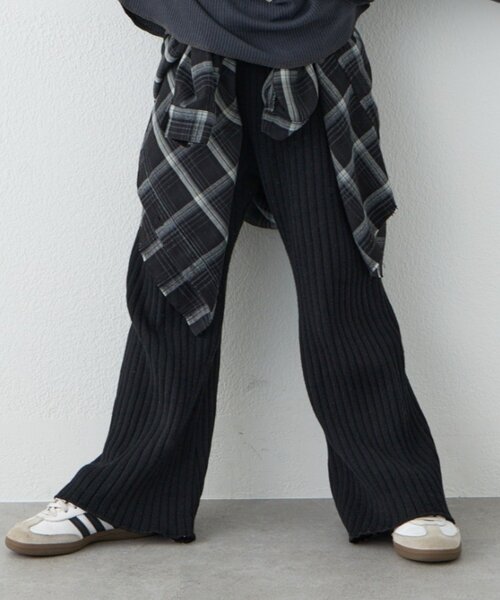 表情豊かなリブ編みが魅力のパンツ。ストンと落ちるシルエットで、気になる体型もさりげなくカバーしてくれます。