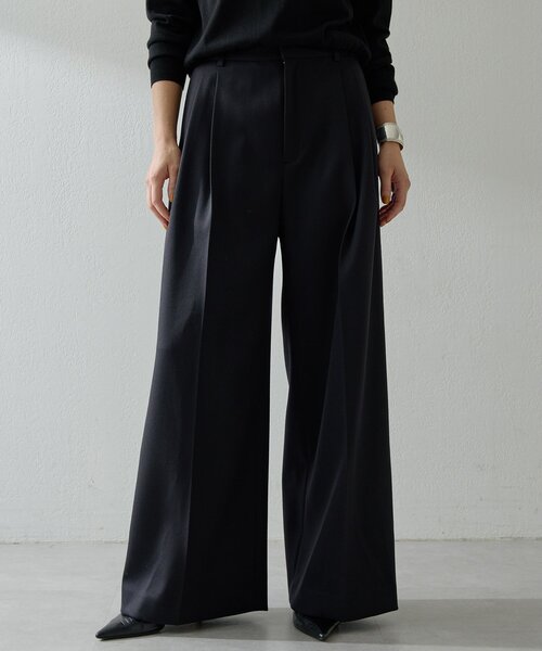 きれいなフォルムを演出する、上品なワイドタックパンツ■オリジナル糸「スピラーレ」を使用したワイドタックパンツ。