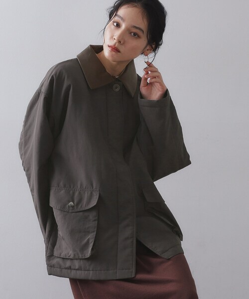 中綿入りで長く着られる、ハンティングジャケットコート