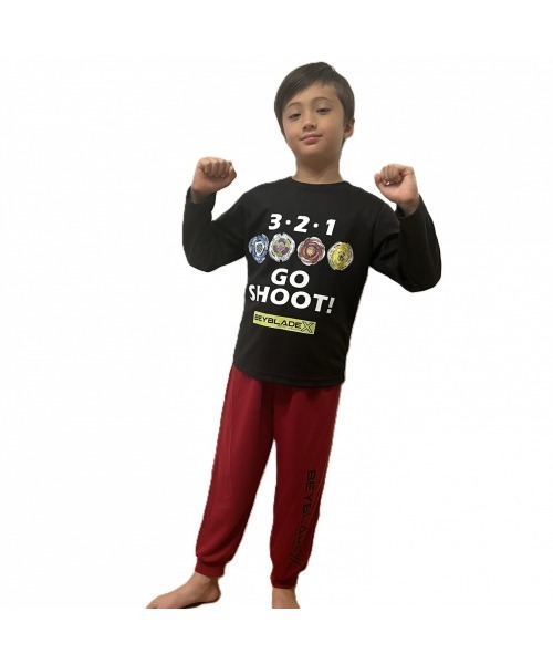 【トイザらス・ベビーザらス限定】ベイブレードエックスの長袖パジャマです!ベイブレードエックスのコマとロゴがプリントされたとってもかっこいいデザインです。<サイズ>120cm:トップス 身丈50cm 身幅39cm 袖丈40cm ボトムス 股上27cm 股下45cm 腰まわり82.5cm 130cm:トップス 身丈54cm 身幅41cm 袖丈44cm ボトムス 股上28cm 股下50cm 腰まわり86.5cm 120cm:トップス 身丈58cm 身幅43cm 袖丈48cm ボトムス 股上29cm 股下55cm 腰まわり92.5cm 120cm:トップス 身丈62cm 身幅45cm 袖丈52cm ボトムス 股上30cm 股下60cm 腰まわり98.5cm<素材>ダンボールニット<組成>本体:ポリエステル100% リブ部分:ポリエステル95% ポリウレタン5%