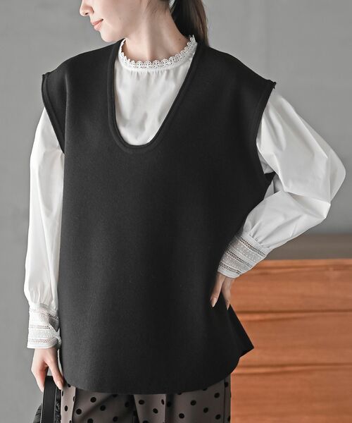 ゆったりとしたUネックはブラウスのレースカラーとも相性ばっちりです。