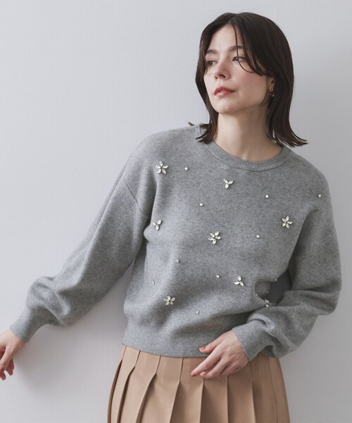 ・ニットトップスの前身頃に、ビジューをあしらった華やかなトップス。