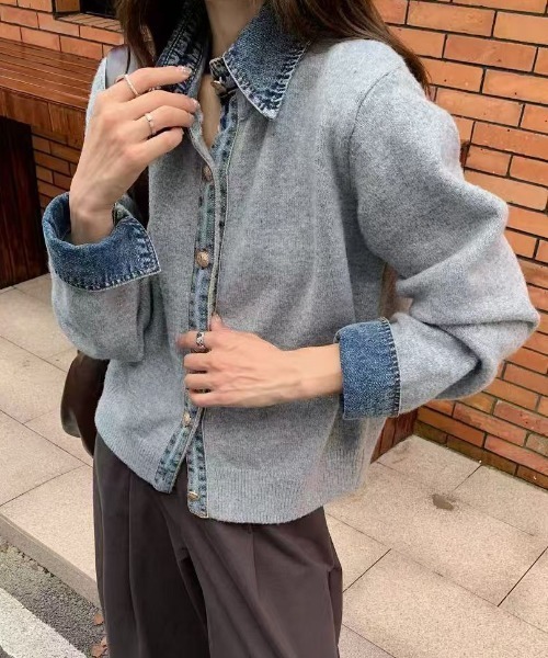 パンツはデニムでセットアップ風のカジュアルコーデや