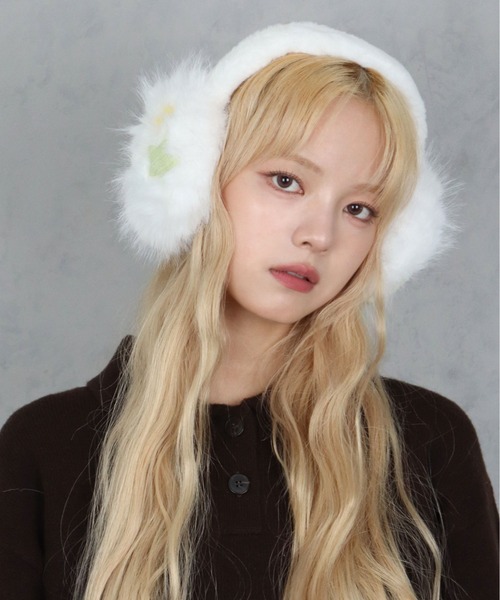 耳元をふわっと包む、スター刺繍バーツがかわいいファーイヤーマフ。