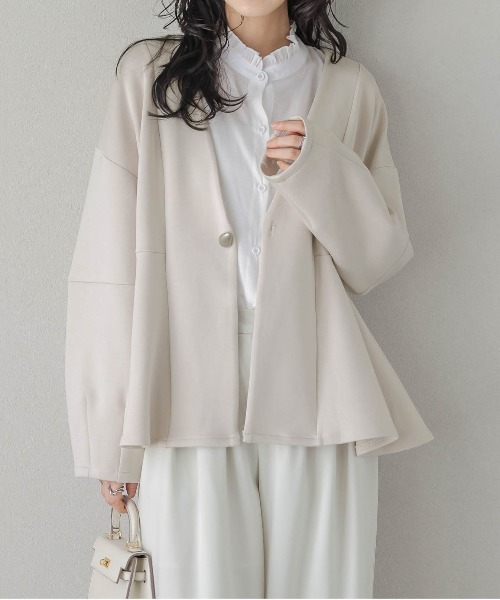 ペプラムジャケットきちんと魅せもリラクシーな着心地も叶えるダンボールニットで仕立て