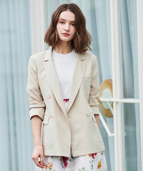 キーワード:ジャケット テーラードジャケット レディース ダブル ロング丈 無地