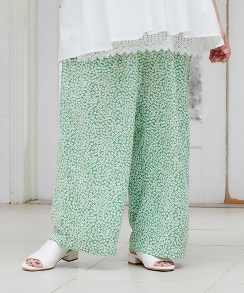 キーワード:パンツ レディース ウエストゴム クロップド ハイウエスト ワイドパンツ 花柄