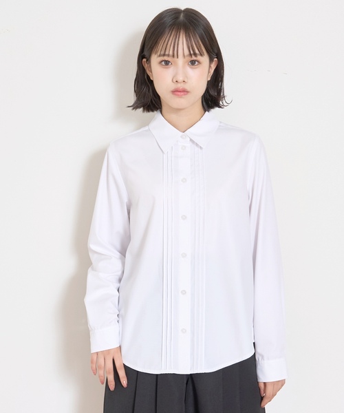 フロントにあしらったタックデザインが華やかなブラウスです。