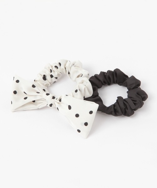 いつものアップヘアをぐっと華やかにドット柄のリボンモチーフが目を引くシュシュ2個セット。