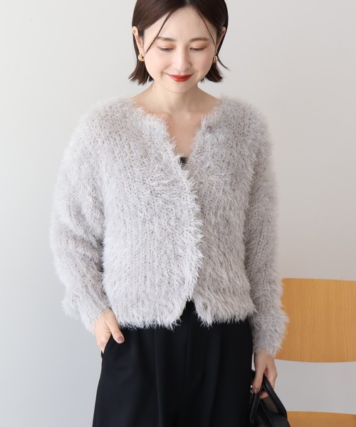 ふんわりとしたシャギー素材が着映えするカーディガン。