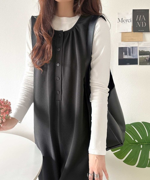 参考商品名:【イージーケア】ふんわり上品、だけどラフ。膨れジャガードヘンリージャガードサロペット