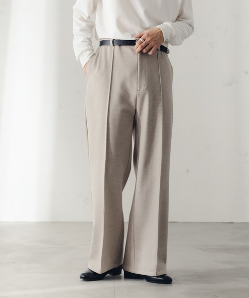 キーワード:パンツ メンズ ウエストゴム ストレート ハイウエスト フルレングス ワイドパンツ 無地