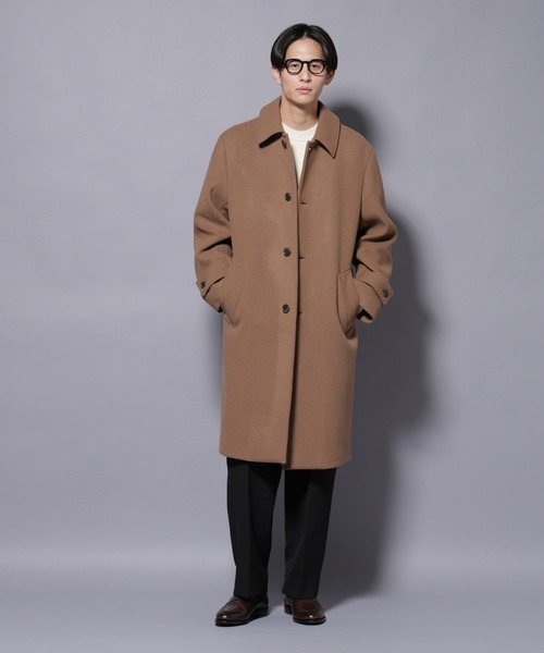 カシミヤミックスの上質な糸を使い、ふんわりとなだらかな肌触りで仕上げた、ナノユニバースオリジナルファブリックのソフトメルトンシングルコート。