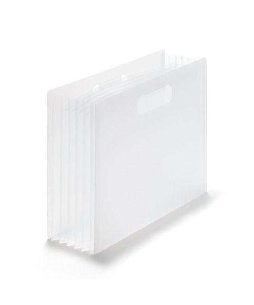 自立する仕分けファイル。持ち運ぶときに持ちやすい取っ手付きです。