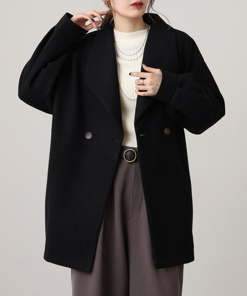 丸みのあるショールカラーと深めのVネックが女性らしさを引き立てるミドル丈コート。