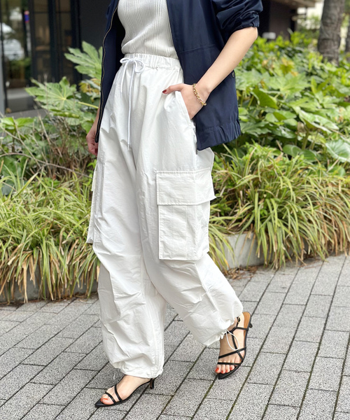 キーワード:カーゴパンツ レディース フルレングス レギュラー ワイドパンツ 無地