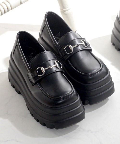 参考商品名:+8cm 軽量厚底 トリプルソールローファー コインローファー ビットローファー タッセル リボン メタルバックル