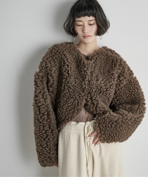 シーズンライクなボア素材で仕立てた、華やかなルックが魅力。