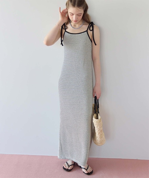 ・カップ付きで1枚でもさらりと着られるキャミソールワンピース。