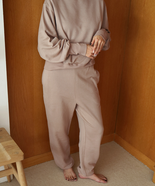 素材感:スウェットなのにとても軽くてやわらかい。ふんわりとした肌さわりが心地よいので、ほっとリラックスできます。