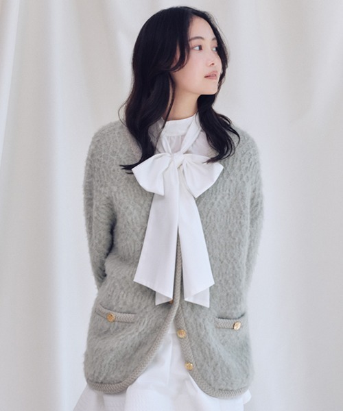 毎年大人気の着回し力抜群なファーライクニットジャケットにお尻が隠れるロング丈が登場。温かみのあるウール・アルパカ混の糸で柄編に編み立てた上に最新の起毛技術でふんわり感を加えた上品な編地を使用しています。ふわふわとした起毛感が優しい印象で、可憐で上品な1着。気になるお尻周りを隠してくれる着丈、ざっくりと羽織ることのできるゆったりとしたシルエットです。フロントはV開きで抜け感をプラスしました。SNIDELオリジナルロゴを施したエレガントなゴールドボタンがアクセントに。ブレード風のパーツが上品でクラシカルな雰囲気を演出します。実用性の高いポケット付きのデザインでアウターとしての機能性も。腕通りもしやすい裏地付きです。ショート丈(SWNJ255025)もご用意がございます。
