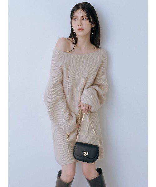 ラクーンお贅沢に使用した、ふんわりとした温かみのある糸を使用し、顔周りをすっきりと、デコルテラインを美しく見せる大きなボートネックで抜け感を出してお作りした大人気のラクーンミニワンピースです。縦に流れるリブ編みと、ボリューミーな身頃や袖で気になるボディラインをさりげなくカバーし、着痩せ効果も抜群。伸縮性があり、オフショルでもご着用いただけるデザインです。