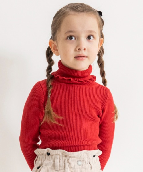 保温性あり、襟端はフリルのようなディティールで可愛い印象になっています