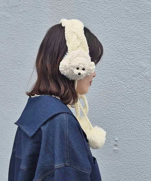 ワンちゃんのお顔がちょこんと付いた、見た目から可愛いイヤマフ。