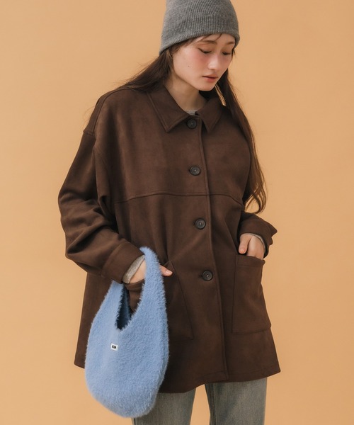 スエード調の素材は、なめらかな手触りとほんのり起毛感があり、見た目にもあたたかみを演出。