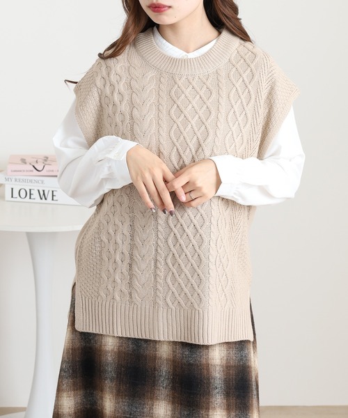 ベストはコンパクトな丈感で、重ねることでウエスト位置が高く見え、スタイルアップ効果も◎。