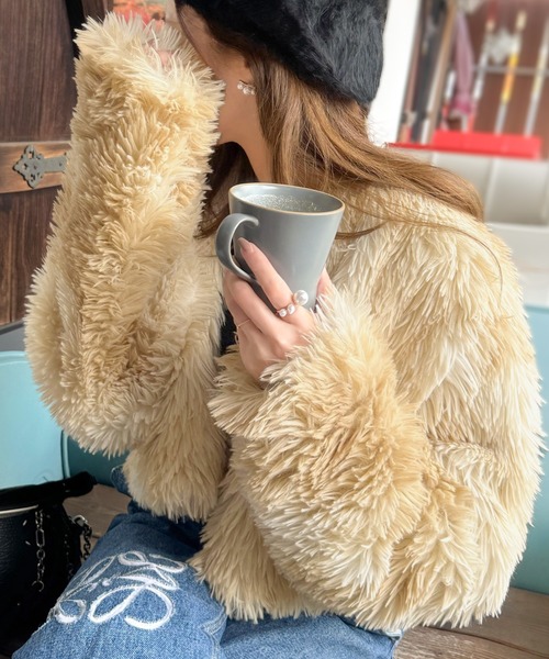 華やかなフェイクファーを使用し、上品でありながらもカジュアルにも着こなせるアイテムです。