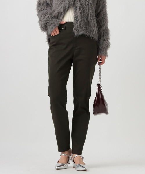 着回しやすい、5ポケットのシンプルデザインながらも、足が綺麗に見えるパターンに作り込んだパンツ。