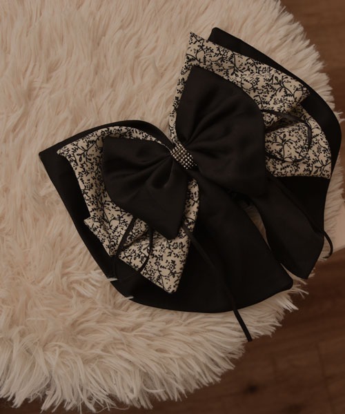 ブラックとボタニカルデザインのリボンが大人かわいいバンスクリップ